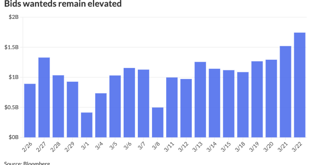Bid wanteds “volumes jumped as clients looked to take advantage of aggressive levels while raising cash ahead of some mega-sized new issues coming down the pipeline,” Birch Creek strategists said.