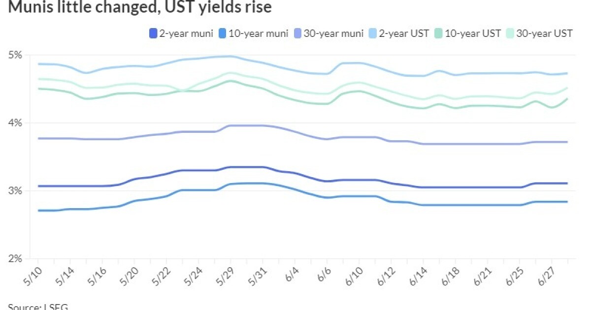 Municipals closed the month and the first half of 2024 on a quiet note ahead of the Fourth of July holiday-shortened week and a new-issue slate coming in at a measly $240 million — though there was much to watch on the sidelines.
